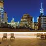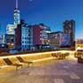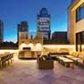 North terrace contains a generous seating area and a tranquil Ortal fireplace with view of Tribeca and Soho